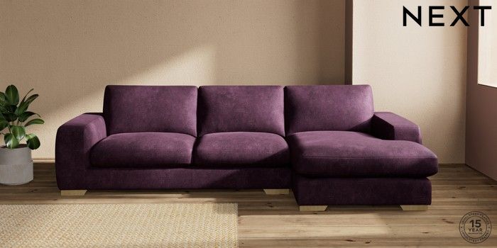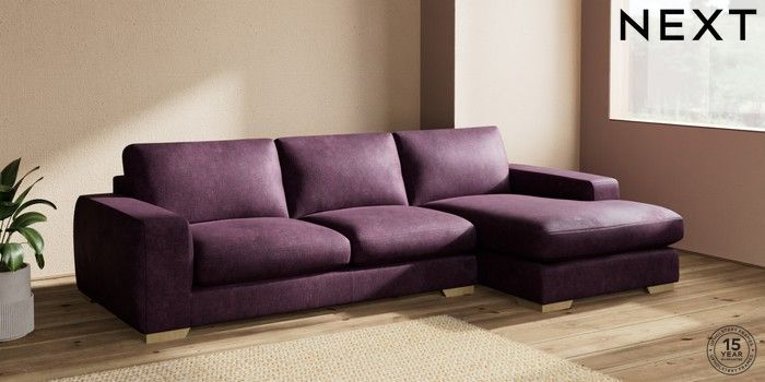 7.2.10 Houghton Deep Sit Large Sofa Chaise - Right Hand Plush Chenille Dark Plum Purple Large Square Angle - Light | Made Click here to use our website with more accessibility support, for example screen readers