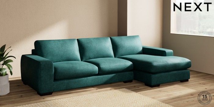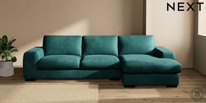 7.2.10 Houghton Deep Sit Large Sofa Chaise - Right Hand Plush Chenille Dark Teal Green Large Square Angle - Dark | Made Click here to use our website with more accessibility support, for example screen readers