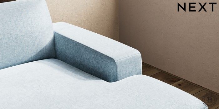 7.2.10 Houghton Deep Sit Large Sofa Chaise - Right Hand Plush Chenille Light Blue Large Square Angle - Chrome Metal | Made Click here to use our website with more accessibility support, for example screen readers