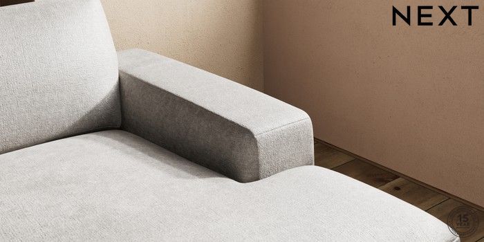 7.2.10 Houghton Deep Sit Large Sofa Chaise - Right Hand Plush Chenille Light Grey Large Square Angle - Chrome Metal | Made Click here to use our website with more accessibility support, for example screen readers