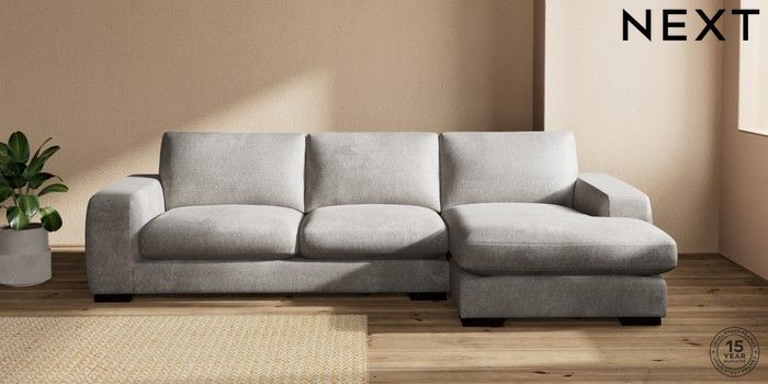 7.2.10 Houghton Deep Sit Large Sofa Chaise - Right Hand Plush Chenille Light Grey Large Square Angle - Dark | Made Click here to use our website with more accessibility support, for example screen readers