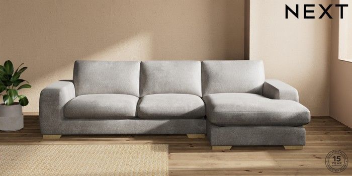 7.2.10 Houghton Deep Sit Large Sofa Chaise - Right Hand Plush Chenille Light Grey Large Square Angle - Light | Made Click here to use our website with more accessibility support, for example screen readers