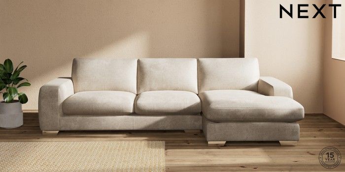 7.2.10 Houghton Deep Sit Large Sofa Chaise - Right Hand Plush Chenille Light Natural Large Square Angle - Chrome Metal | Made Click here to use our website with more accessibility support, for example screen readers
