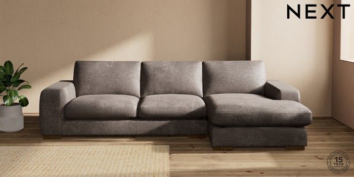 7.2.10 Houghton Deep Sit Large Sofa Chaise - Right Hand Plush Chenille Mink Brown Large Square Angle - Mid | Made Click here to use our website with more accessibility support, for example screen readers
