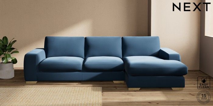 7.2.10 Houghton Deep Sit Large Sofa Chaise - Right Hand Plush Velvet Easy Clean Airforce Blue Large Square Angle - Light | Made Click here to use our website with more accessibility support, for example screen readers