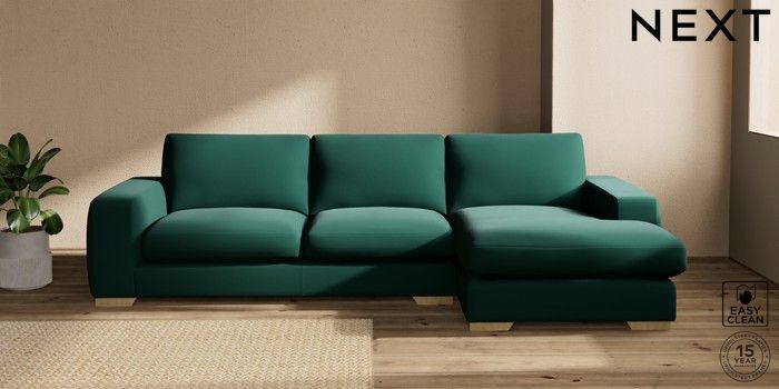 7.2.10 Houghton Deep Sit Large Sofa Chaise - Right Hand Plush Velvet Easy Clean Bottle Green Large Square Angle - Light | Made Click here to use our website with more accessibility support, for example screen readers
