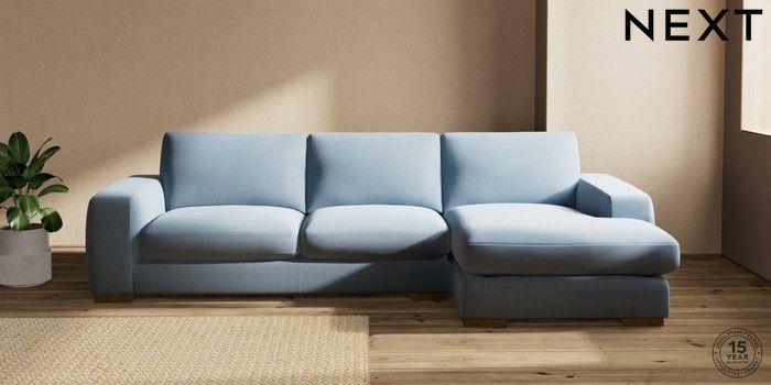 7.2.10 Houghton Deep Sit Large Sofa Chaise - Right Hand Relaxed Linen Look Mid Blue Large Square Angle - Mid | Made Click here to use our website with more accessibility support, for example screen readers