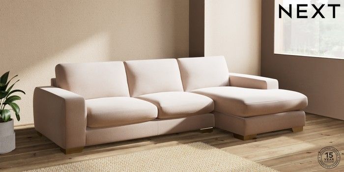 7.2.10 Houghton Deep Sit Large Sofa Chaise - Right Hand Relaxed Linen Look Mid Natural Large Square Angle - Brushed Brass | Made Click here to use our website with more accessibility support, for example screen readers
