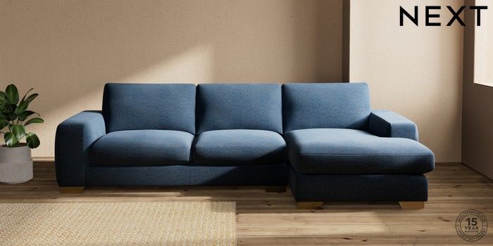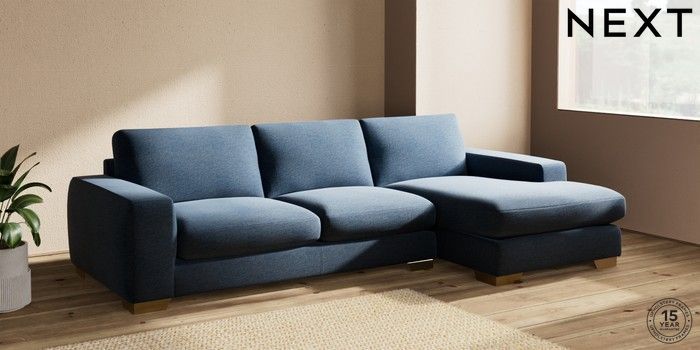 7.2.10 Houghton Deep Sit Large Sofa Chaise - Right Hand Ripple Chenille Dark Blue Large Square Angle - Brushed Brass | Made Click here to use our website with more accessibility support, for example screen readers