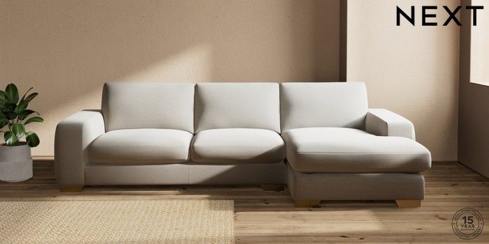 7.2.10 Houghton Deep Sit Large Sofa Chaise - Right Hand Ripple Chenille Light Natural Large Square Angle - Brushed Brass | Made Click here to use our website with more accessibility support, for example screen readers