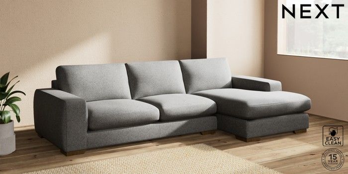 7.2.10 Houghton Deep Sit Large Sofa Chaise - Right Hand Tweedy Blend Easy Clean Dark Grey Large Square Angle - Mid | Made Click here to use our website with more accessibility support, for example screen readers