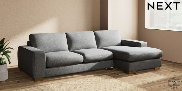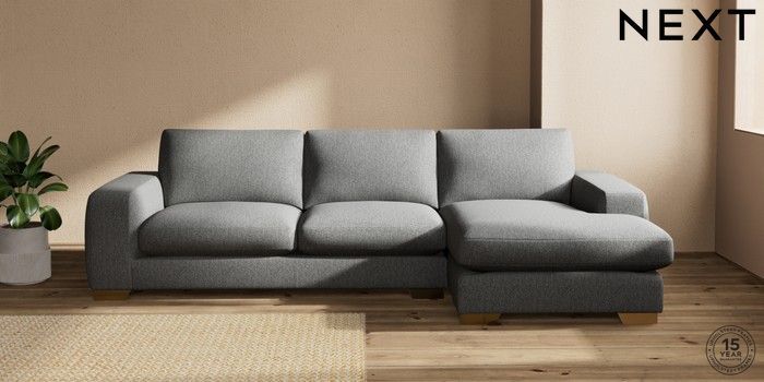 7.2.10 Houghton Deep Sit Large Sofa Chaise - Right Hand Tweedy Chenille Dark Grey Large Square Angle - Brushed Brass | Made Click here to use our website with more accessibility support, for example screen readers