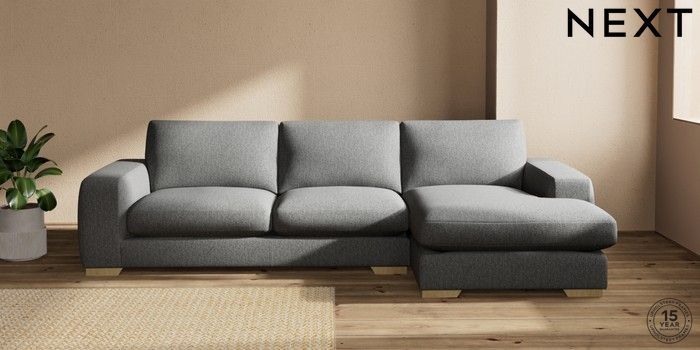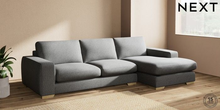 7.2.10 Houghton Deep Sit Large Sofa Chaise - Right Hand Tweedy Chenille Dark Grey Large Square Angle - Light | Made Click here to use our website with more accessibility support, for example screen readers