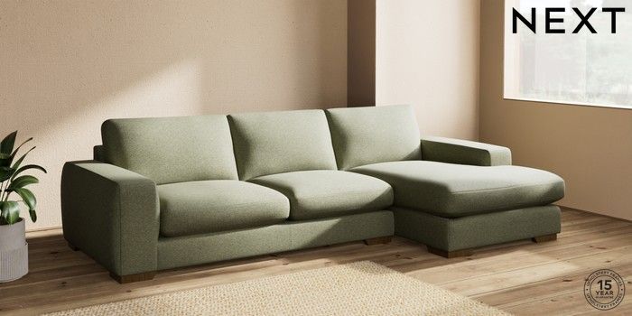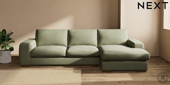 7.2.10 Houghton Deep Sit Large Sofa Chaise - Right Hand Tweedy Chenille Mid Moss Green Large Square Angle - Mid | Made Click here to use our website with more accessibility support, for example screen readers