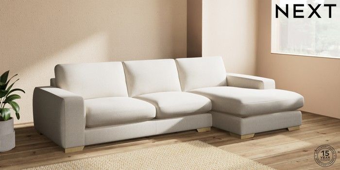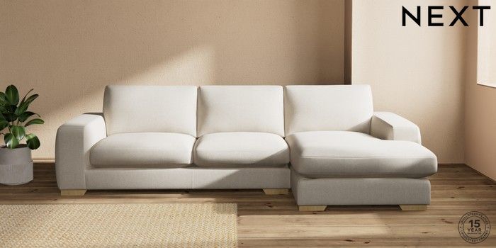 7.2.10 Houghton Deep Sit Large Sofa Chaise - Right Hand Tweedy Chenille Oyster Large Square Angle - Light | Made Click here to use our website with more accessibility support, for example screen readers