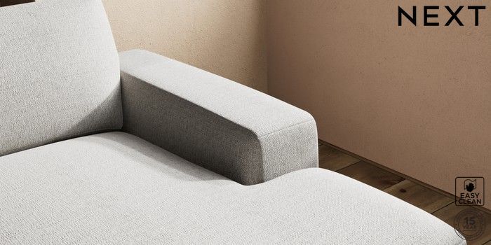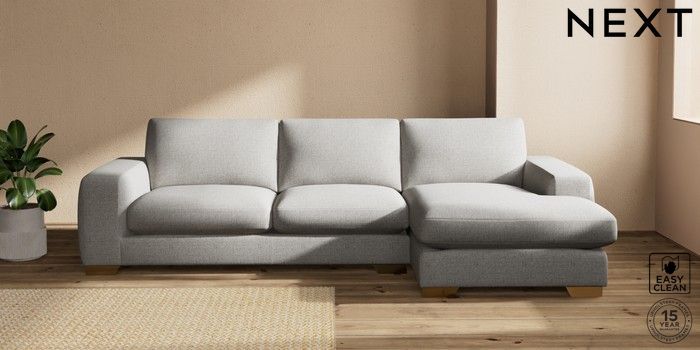 7.2.10 Houghton Deep Sit Large Sofa Chaise - Right Hand Woven Chenille Easy Clean Light Grey Large Square Angle - Brushed Brass | Made Click here to use our website with more accessibility support, for example screen readers