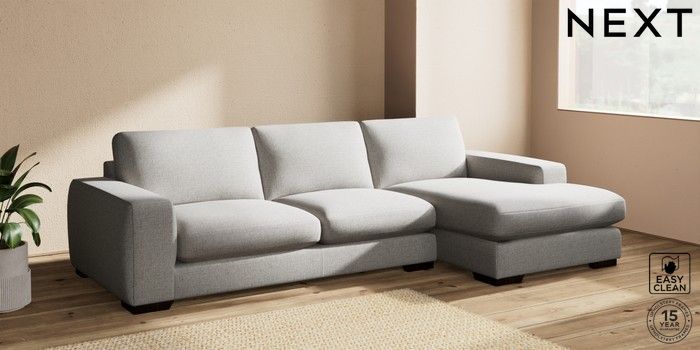 7.2.10 Houghton Deep Sit Large Sofa Chaise - Right Hand Woven Chenille Easy Clean Light Grey Large Square Angle - Dark | Made Click here to use our website with more accessibility support, for example screen readers
