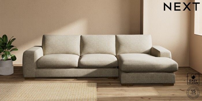 7.2.10 Houghton Deep Sit Large Sofa Chaise - Right Hand Woven Chenille Easy Clean Mid Natural Large Square Angle - Mid | Made Click here to use our website with more accessibility support, for example screen readers