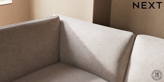 7.2.10 Houghton Deep Sit Medium Corner Chaise - Left Hand Boucle Chenille Light Natural Large Square Angle - Chrome Metal | Made Click here to use our website with more accessibility support, for example screen readers