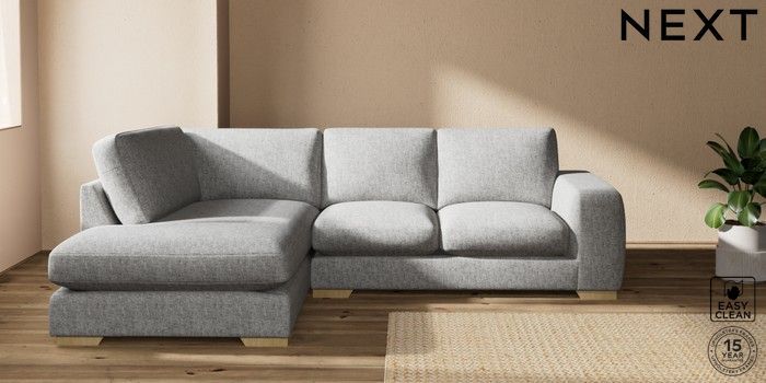 7.2.10 Houghton Deep Sit Medium Corner Chaise - Left Hand Chunky Boucle Easy Clean Light Grey Large Square Angle - Light | Made Click here to use our website with more accessibility support, for example screen readers
