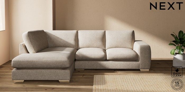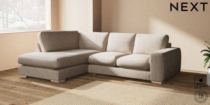 7.2.10 Houghton Deep Sit Medium Corner Chaise - Left Hand Chunky Boucle Easy Clean Mid Natural Large Square Angle - Chrome Metal | Made Click here to use our website with more accessibility support, for example screen readers