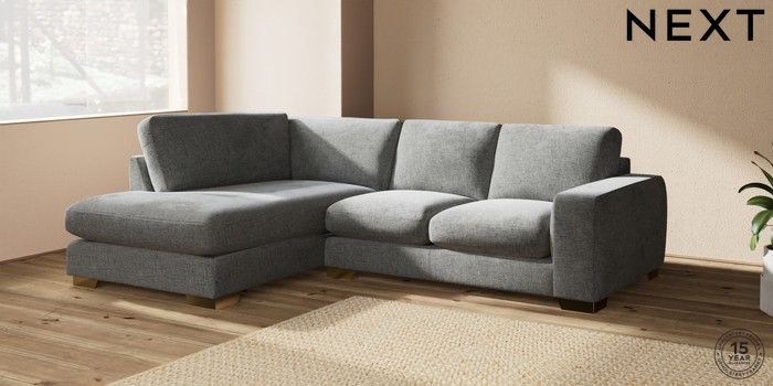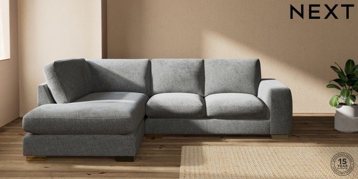 7.2.10 Houghton Deep Sit Medium Corner Chaise - Left Hand Chunky Chenille Dark Grey Large Square Angle - Brushed Brass | Made Click here to use our website with more accessibility support, for example screen readers