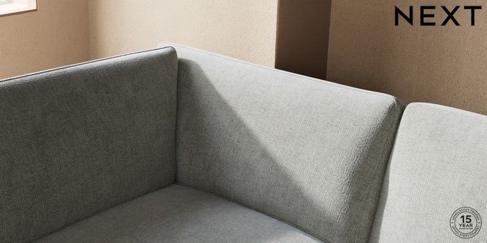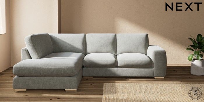 7.2.10 Houghton Deep Sit Medium Corner Chaise - Left Hand Chunky Chenille Light Grey Large Square Angle - Chrome Metal | Made Click here to use our website with more accessibility support, for example screen readers
