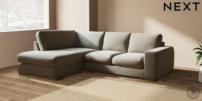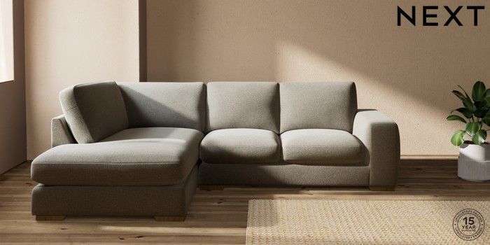 7.2.10 Houghton Deep Sit Medium Corner Chaise - Left Hand Chunky Marl Light Olive Green Large Square Angle - Mid | Made Click here to use our website with more accessibility support, for example screen readers