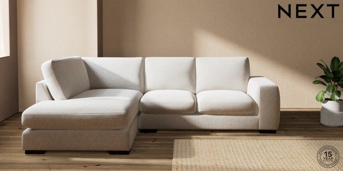 7.2.10 Houghton Deep Sit Medium Corner Chaise - Left Hand Chunky Marl Oyster Large Square Angle - Dark | Made Click here to use our website with more accessibility support, for example screen readers