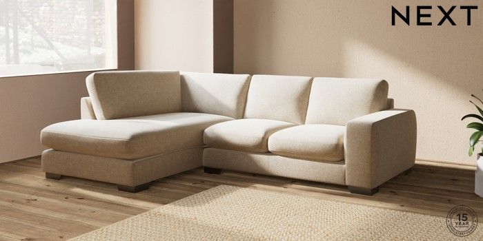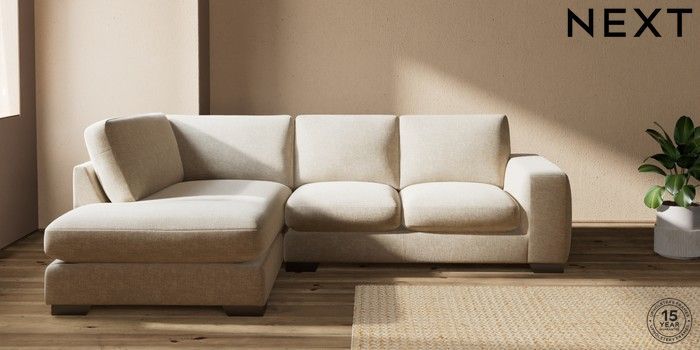 7.2.10 Houghton Deep Sit Medium Corner Chaise - Left Hand Chunky Weave Cream Large Square Angle - Gunmetal | Made Click here to use our website with more accessibility support, for example screen readers