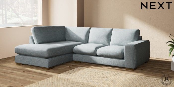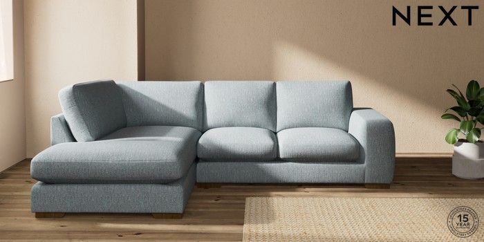 7.2.10 Houghton Deep Sit Medium Corner Chaise - Left Hand Chunky Weave Mid Blue Large Square Angle - Mid | Made Click here to use our website with more accessibility support, for example screen readers