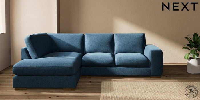 7.2.10 Houghton Deep Sit Medium Corner Chaise - Left Hand Cotswold Chenille Dark Blue Large Square Angle - Mid | Made Click here to use our website with more accessibility support, for example screen readers