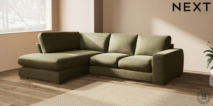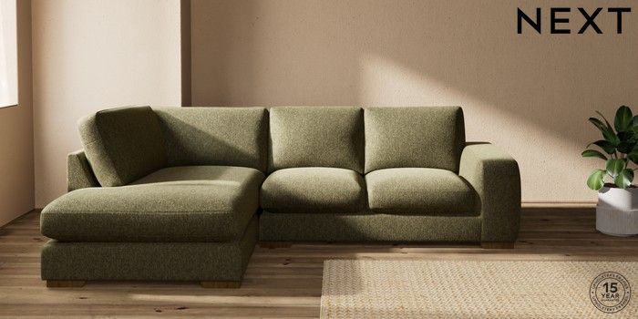 7.2.10 Houghton Deep Sit Medium Corner Chaise - Left Hand Cotswold Chenille Dark Green Large Square Angle - Mid | Made Click here to use our website with more accessibility support, for example screen readers