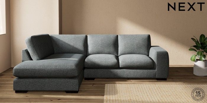 7.2.10 Houghton Deep Sit Medium Corner Chaise - Left Hand Cotswold Chenille Dark Grey Large Square Angle - Dark | Made Click here to use our website with more accessibility support, for example screen readers
