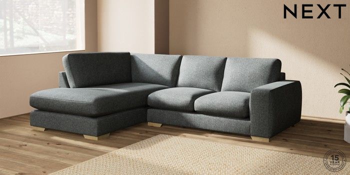 7.2.10 Houghton Deep Sit Medium Corner Chaise - Left Hand Cotswold Chenille Dark Grey Large Square Angle - Light | Made Click here to use our website with more accessibility support, for example screen readers