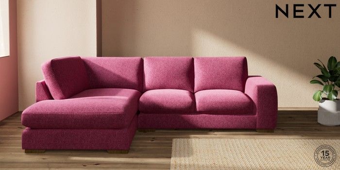 7.2.10 Houghton Deep Sit Medium Corner Chaise - Left Hand Cotswold Chenille Dark Raspberry Pink Large Square Angle - Mid | Made Click here to use our website with more accessibility support, for example screen readers