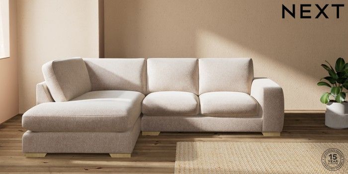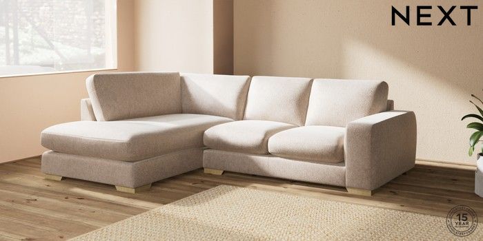 7.2.10 Houghton Deep Sit Medium Corner Chaise - Left Hand Cotswold Chenille Light Natural Large Square Angle - Light | Made Click here to use our website with more accessibility support, for example screen readers