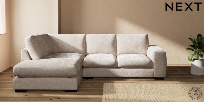 7.2.10 Houghton Deep Sit Medium Corner Chaise - Left Hand Distressed Velour Mid Natural Large Square Angle - Dark | Made Click here to use our website with more accessibility support, for example screen readers