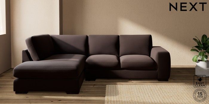 7.2.10 Houghton Deep Sit Medium Corner Chaise - Left Hand Fine Chenille Easy Clean Chocolate Brown Large Square Angle - Dark | Made Click here to use our website with more accessibility support, for example screen readers