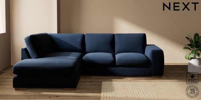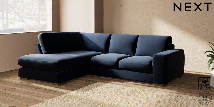 7.2.10 Houghton Deep Sit Medium Corner Chaise - Left Hand Fine Chenille Easy Clean Dark Navy Blue Large Square Angle - Mid | Made Click here to use our website with more accessibility support, for example screen readers