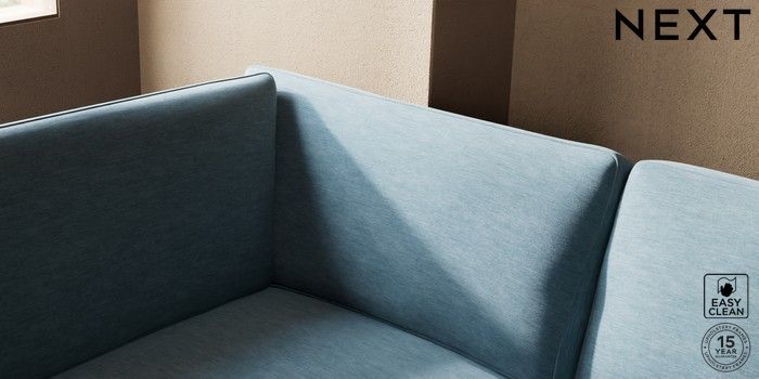7.2.10 Houghton Deep Sit Medium Corner Chaise - Left Hand Fine Chenille Easy Clean Mid Blue Large Square Angle - Chrome Metal | Made Click here to use our website with more accessibility support, for example screen readers