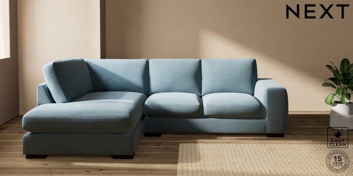 7.2.10 Houghton Deep Sit Medium Corner Chaise - Left Hand Fine Chenille Easy Clean Mid Blue Large Square Angle - Dark | Made Click here to use our website with more accessibility support, for example screen readers