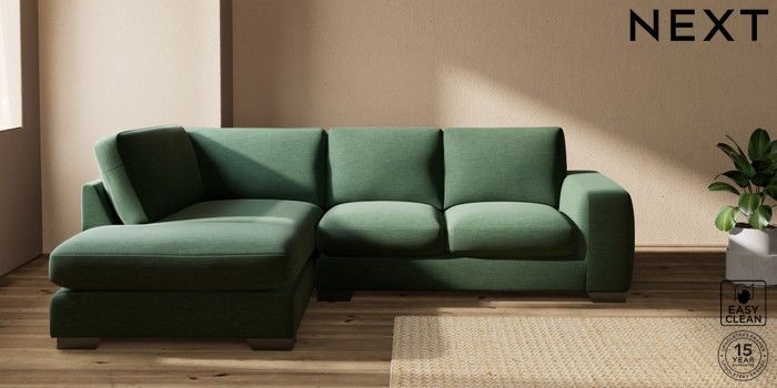 7.2.10 Houghton Deep Sit Medium Corner Chaise - Left Hand Fine Chenille Easy Clean Mid Khaki Green Large Square Angle - Gunmetal | Made Click here to use our website with more accessibility support, for example screen readers