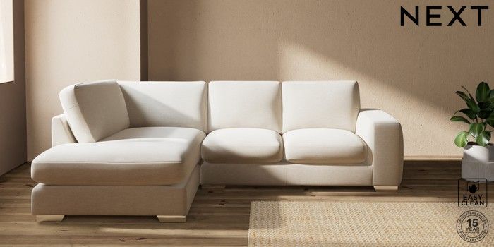 7.2.10 Houghton Deep Sit Medium Corner Chaise - Left Hand Fine Chenille Easy Clean Oyster Large Square Angle - Chrome Metal | Made Click here to use our website with more accessibility support, for example screen readers
