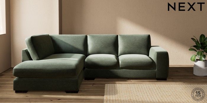 7.2.10 Houghton Deep Sit Medium Corner Chaise - Left Hand Luxe Chenille Mid Green Large Square Angle - Dark | Made Click here to use our website with more accessibility support, for example screen readers