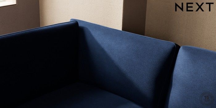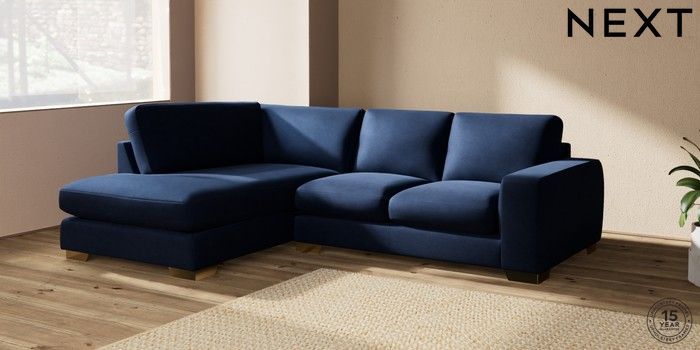 7.2.10 Houghton Deep Sit Medium Corner Chaise - Left Hand Luxe Chenille Navy Blue Large Square Angle - Brushed Brass | Made Click here to use our website with more accessibility support, for example screen readers