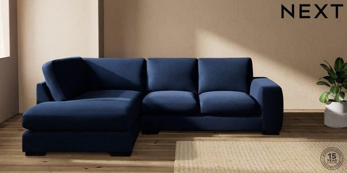 7.2.10 Houghton Deep Sit Medium Corner Chaise - Left Hand Luxe Chenille Navy Blue Large Square Angle - Dark | Made Click here to use our website with more accessibility support, for example screen readers