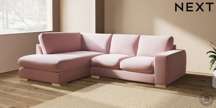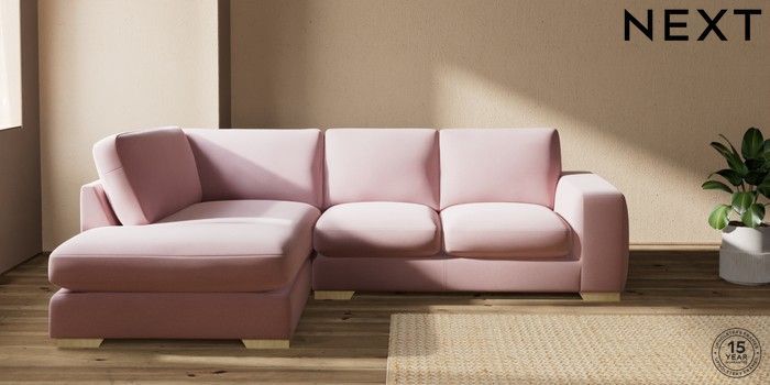 7.2.10 Houghton Deep Sit Medium Corner Chaise - Left Hand Natural Mix Light Rose Pink Large Square Angle - Light | Made Click here to use our website with more accessibility support, for example screen readers