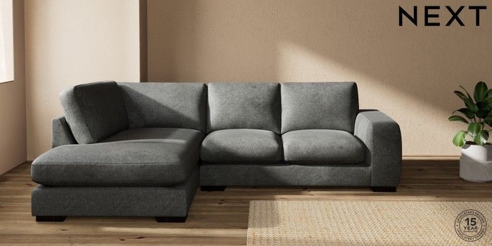 7.2.10 Houghton Deep Sit Medium Corner Chaise - Left Hand Plush Chenille Dark Grey Large Square Angle - Dark | Made Click here to use our website with more accessibility support, for example screen readers
