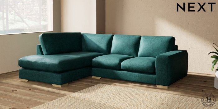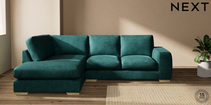 7.2.10 Houghton Deep Sit Medium Corner Chaise - Left Hand Plush Chenille Dark Teal Green Large Square Angle - Light | Made Click here to use our website with more accessibility support, for example screen readers